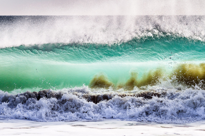 In Trafalgar in Andalusien waren wir auf der Suche nach dem besten Licht für den Leuchtturm, der auf der Landzunge steht. Vor dem Leuchtturm liegt ein Strand, der ideale Bedingungen für Surfer bietet. Meterhohe Wellen rollen auf den den Sandstrand zu. Logischerweise freuen sich nicht nur Surfer über solche Wellen. Wir blieben gleich ein paar Tage auf dem nahegelegenen Campingplatz und schauten uns immer wieder die Wellen an. Tagsüber – also zu Zeiten, wo sich Fotografen normalerweise im schattigen Wohnmobil mit dem Schreiben von Blogbeiträgen beschäftigen, wurden die Wellen von hinten von der Sonne durchleuchtet. Im Rollen zogen die Wellen den Sand mit nach oben. Nur einen Bruchteil einer Sekunde war dieser Sand für den Betrachter von Strand aus zu erkennen. Geblendet von der grellen Sonne, verklebt mit Sand und Sonnencreme warteten wir geduldig auf den passenden Moment und mühten uns ab, knackscharfe Fotos in dieser schnellen Bewegung hinzubekommen. Wir waren an diesem Tag im Flow. Jetzt ist es ein Genuß, unsere Fotoausbeute mit dem Betrachter teilen zu dürfen.