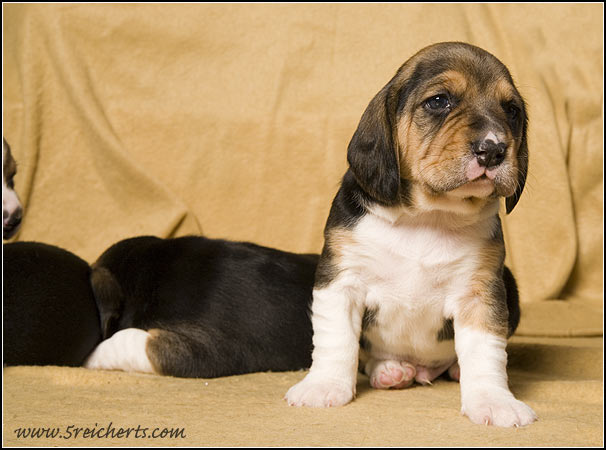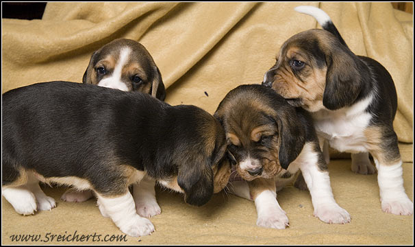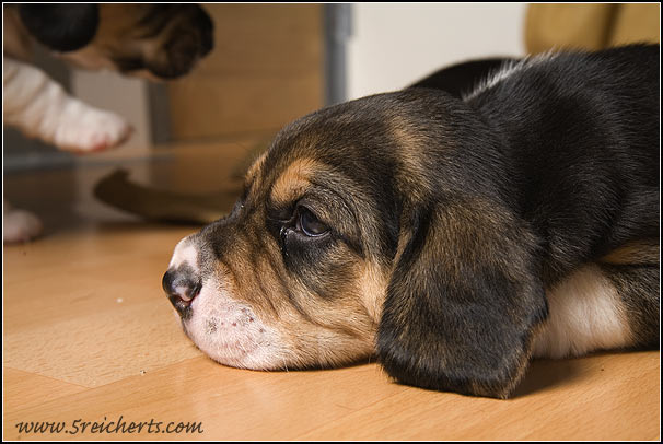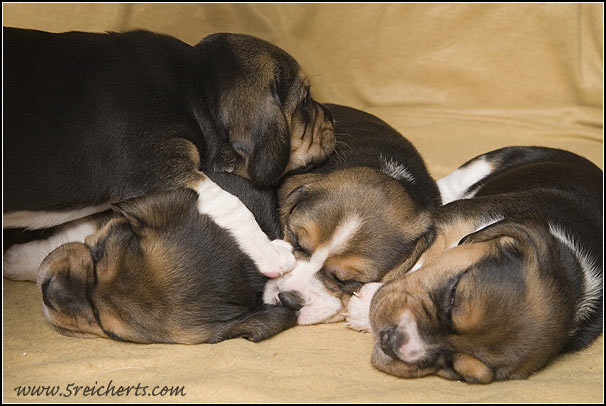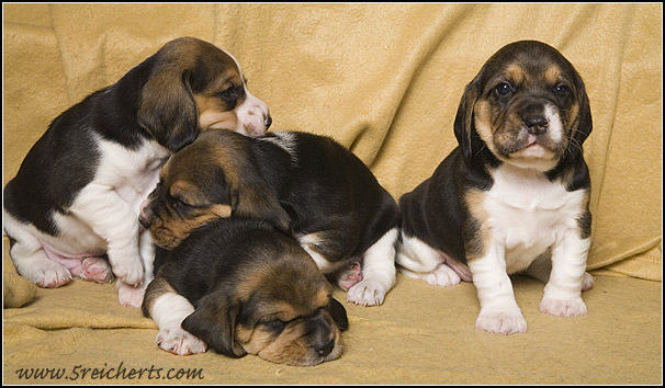 Jetzt, nach 3,5 Wochen, werden unsere Welpen munter. Sie erledigen ihr Geschäft vor der kuscheligen Kiste und spielen nun viel. Lucky scheint es nicht mehr so ganz zu packen, voll zu stillen, wir haben gestern (14.2.) angefangen zuzufüttern, was von den Welpen sehr gern angenommen wurde. Es gab gar keine Probleme.