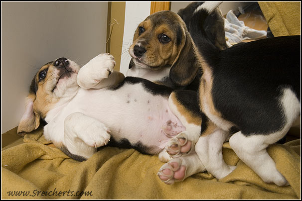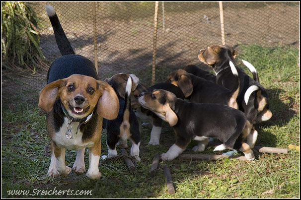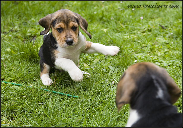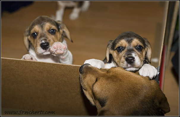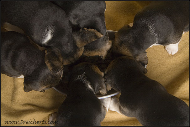 hier kann man gut sehen, wie groß die Welpen schon sind.
