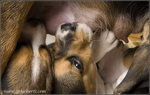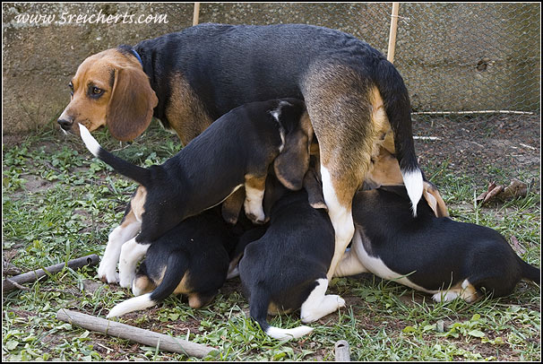 Wenn sie mal bei den Welpen ist muß sie ihre Zitzen ganz schön verteidigen, klappt das nicht mehr hilft nur noch die Flucht.